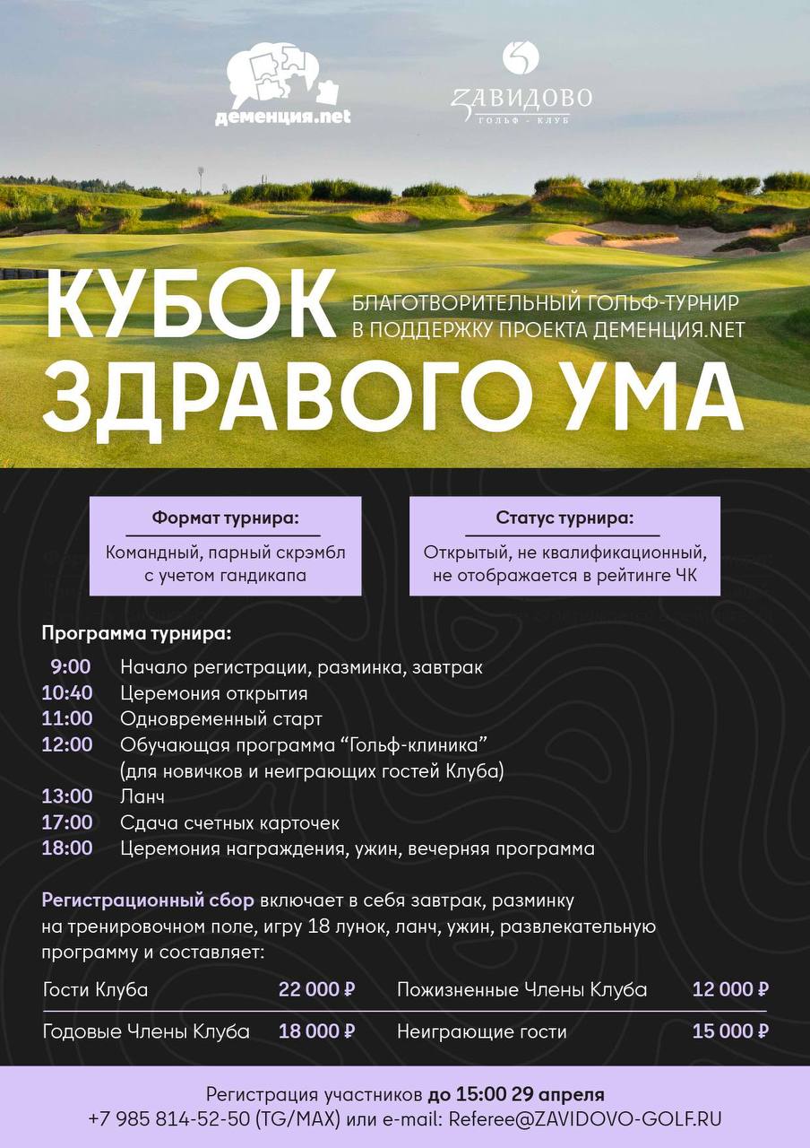 30 апреля в Гольф-клубе Завидово состоится благотворительный турнир «Кубок здравого ума»
